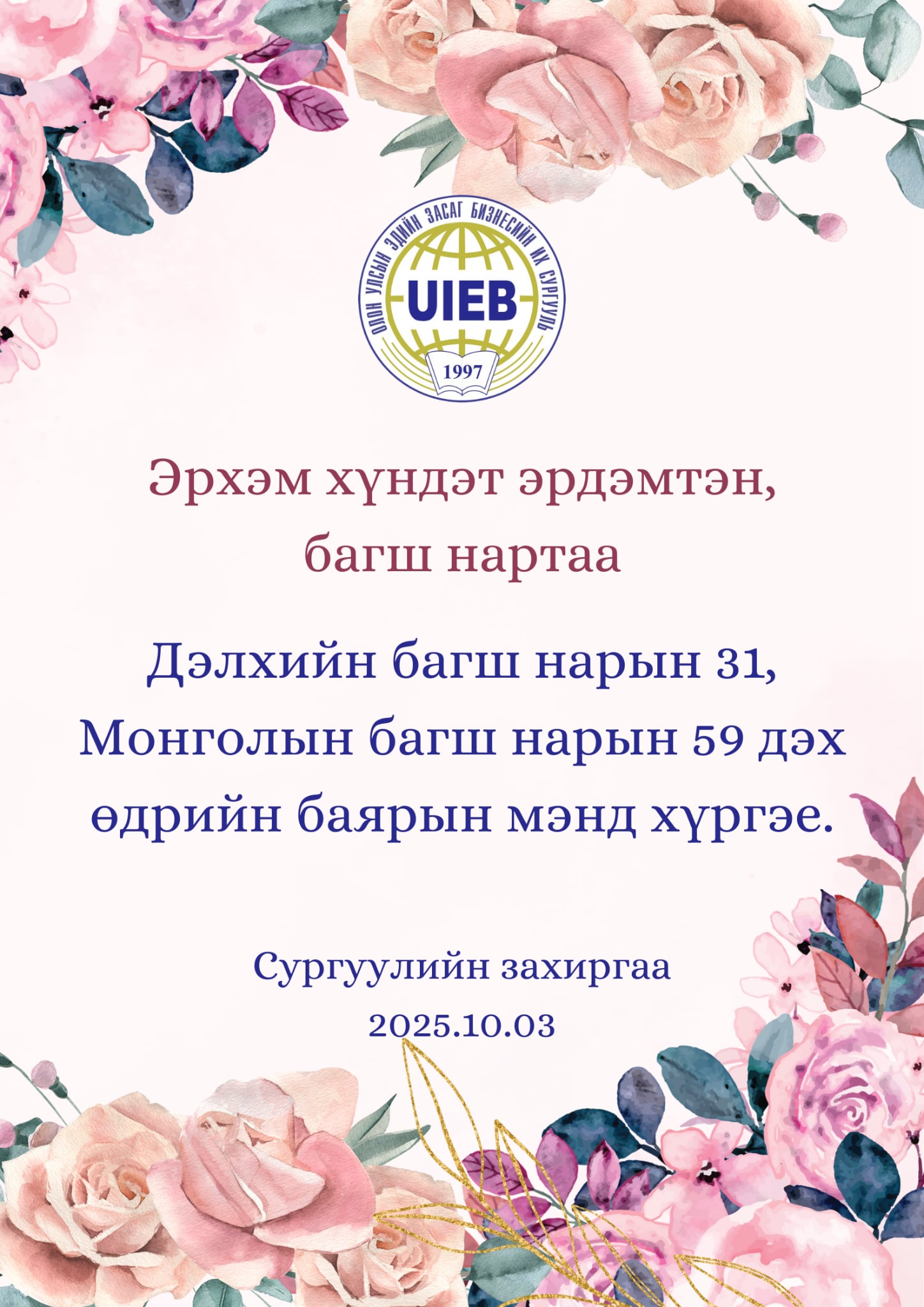 Олон улсын эдийн засаг бизнесийн их сургуульд сурч байгаа нийт казах оюутнуудын эрх ашгийг хамгаалан тэдний сурч боловсрох үйл явцад түлхэц үзүүлэн хамтран ажиллахад бидний эрхэм зорилго оршино. Зорилт: Клубынхаа нэр төрийг өндөрт өргөж явах ОУЭЗБИС-ийн казах оюутнуудын дунд эрдэм шинжилгээний бага хурал болон нээлттэй ярилцлагыг тогтмол зохион байгуулах Авьяаслаг…